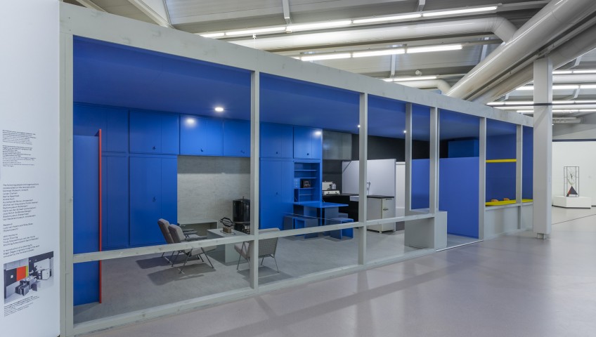 Reconstructie van een woonsuggestie van Gerrit Rietveld en Constant voor De Bijenkorf Amsterdam uit 1954, Cobra Museum voor Moderne Kunst, Amstelveen, 2016.